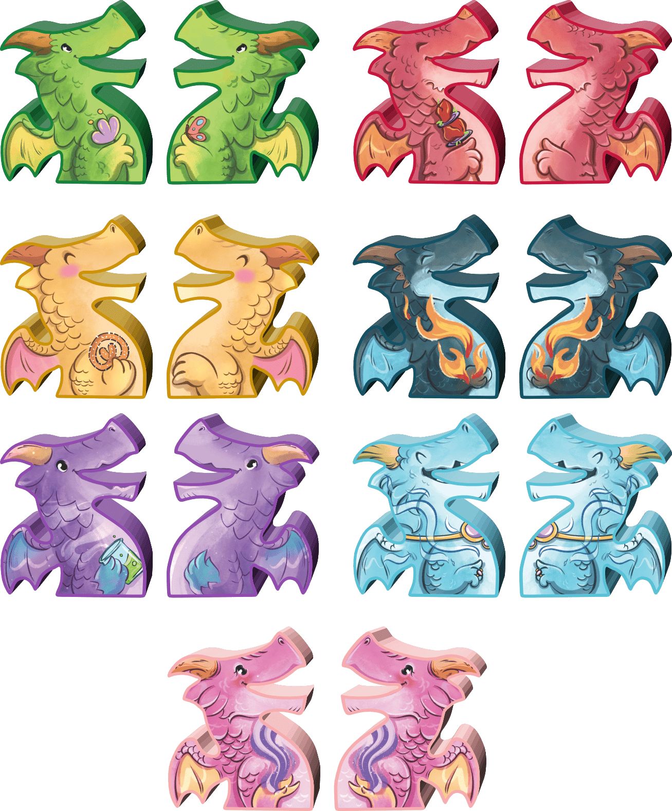 - 14 наклеек для деревянных фишек драконов из игры «Мастера пламени»