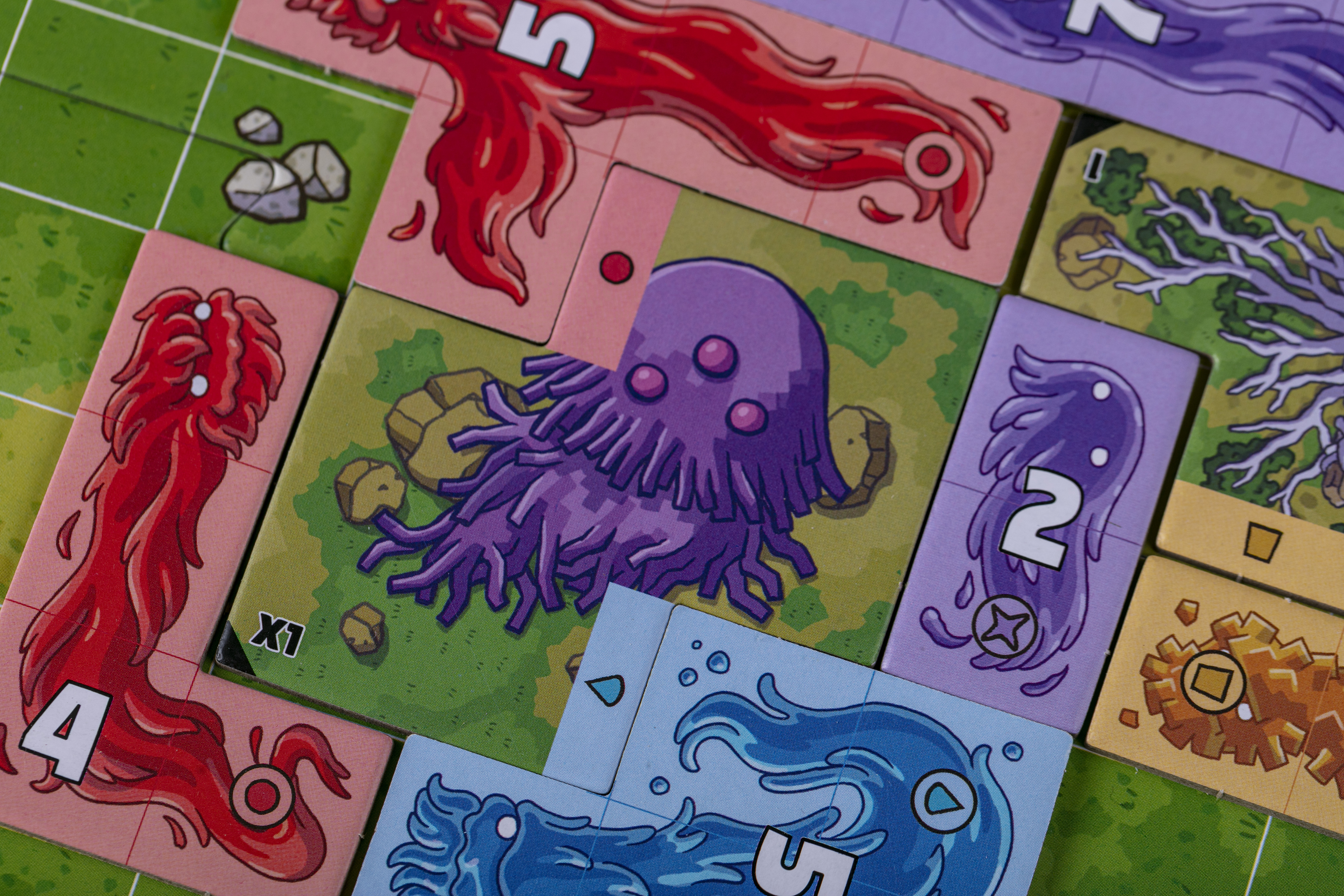Ваша цель — победить загадочное тёмное существо с помощью дружелюбных духов. Для этого вы будете разыгрывать карты из руки, чтобы получать подходящие вам полимино-фигуры и окружать с их помощью приспешников босса.