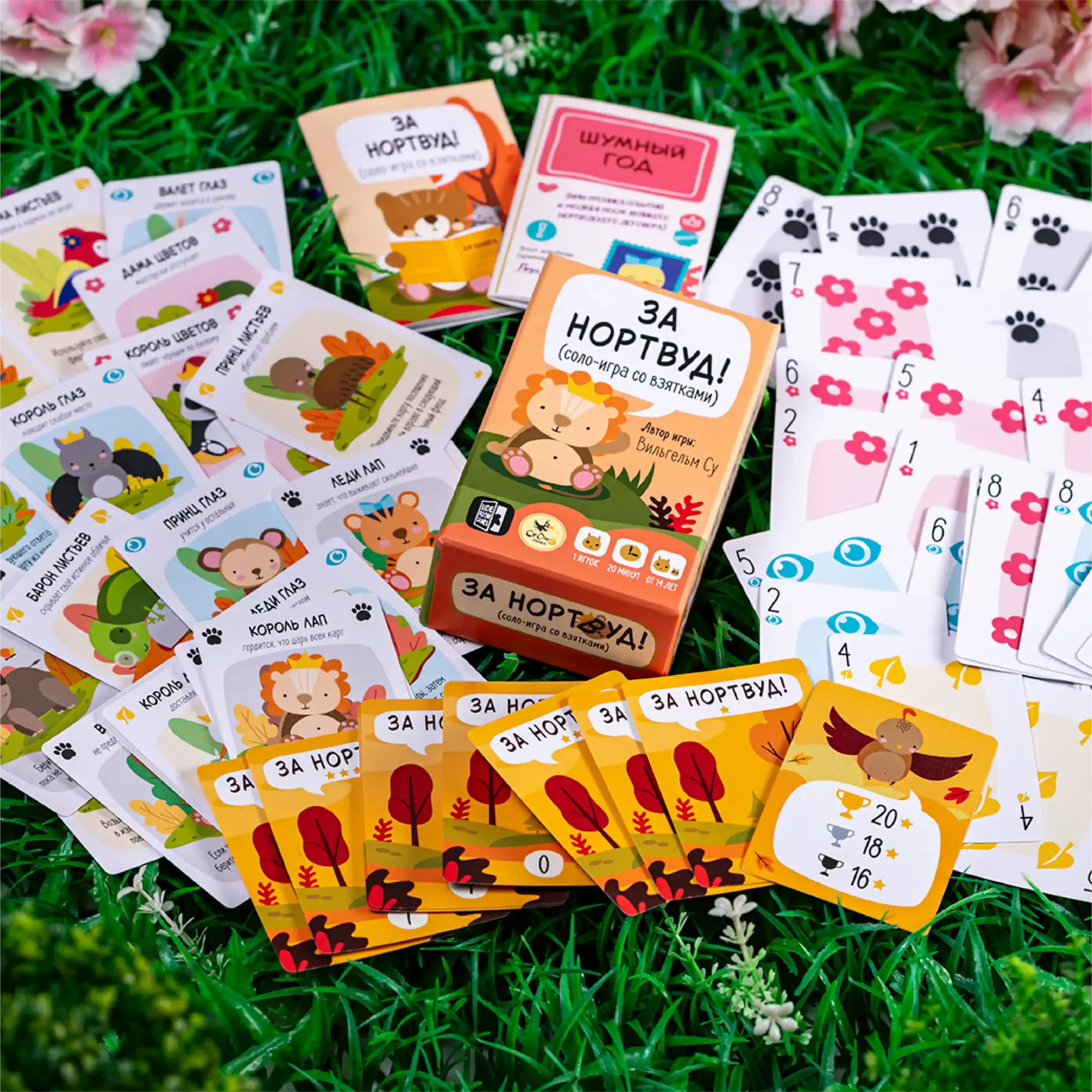 «За Нортвуд!» — это умная, но лёгкая в освоении карточная игра, в которой вы станете дипломатом в мире животных. Ваша задача — заручиться поддержкой правителей восьми феодов и мирно объединить королевство. Каждый визит — это партия на взятки, где масть правителя становится козырем, а победа требует взять ровно столько взяток, сколько он желает. Всё просто на словах, однако каждое решение требует тактики и точного расчёта.