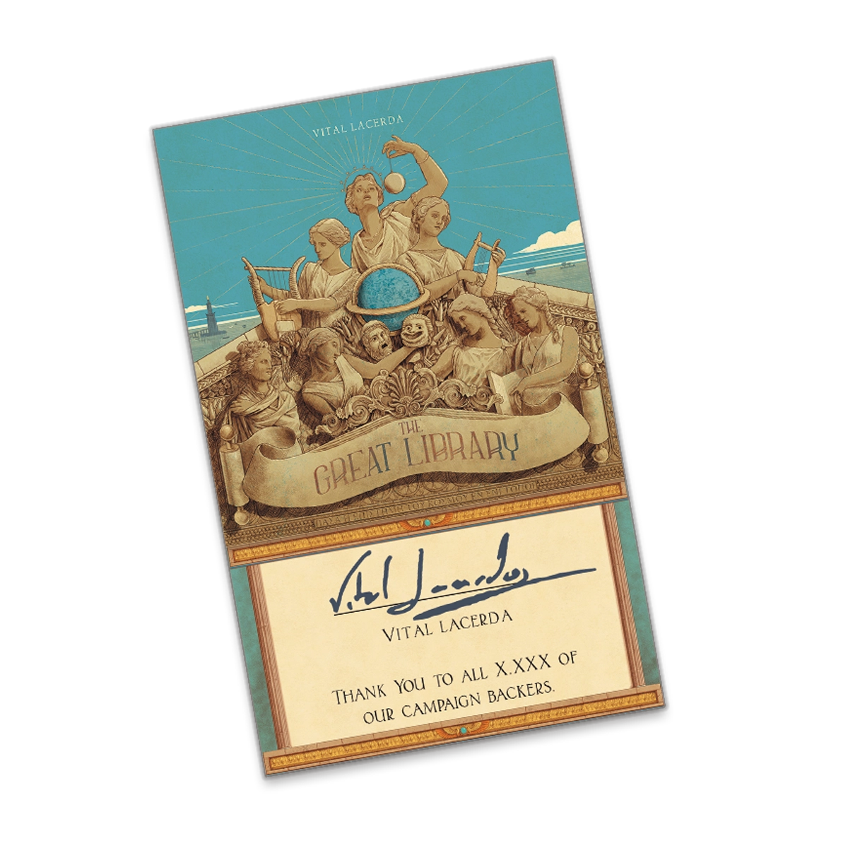 Вы можете стать обладателем одной из уникальных коллекционных наклеек с автографом Витала Ласерды и иллюстрацией из его настольной игры «Великая библиотека». Тираж ограничен!