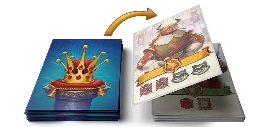 Партия состоит из четырёх раундов. В каждом раунде вы приобретаете наёмников, помещаете их в протекторы с вашим гербом и формируете общую колоду. Затем колода перемешивается, и карты открываются по одной.